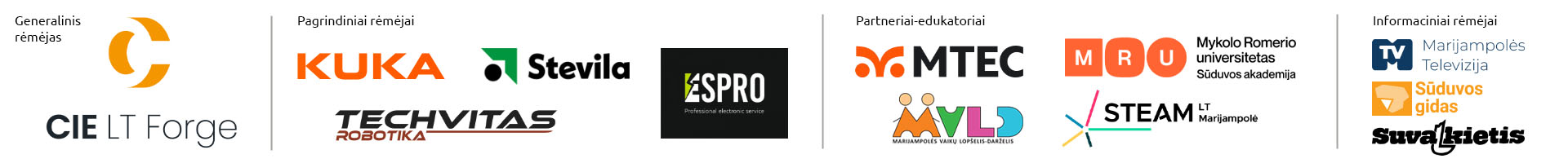 „Marijampolės RoboForge lyga“ plečia partnerių ratą – prie projekto prisijungė pagrindiniai rėmėjai ir partneriai-edukatoriai, kurie kartu padeda kurti ilgalaikę technologinio ugdymo ekosistemą regione. Partnerystės sustiprina projekto kokybę, suteikia mokiniams daugiau galimybių, o Marijampolės bendruomenei – naują požiūrį į inžineriją ir jos svarbą ateičiai.
