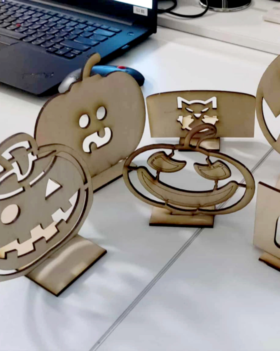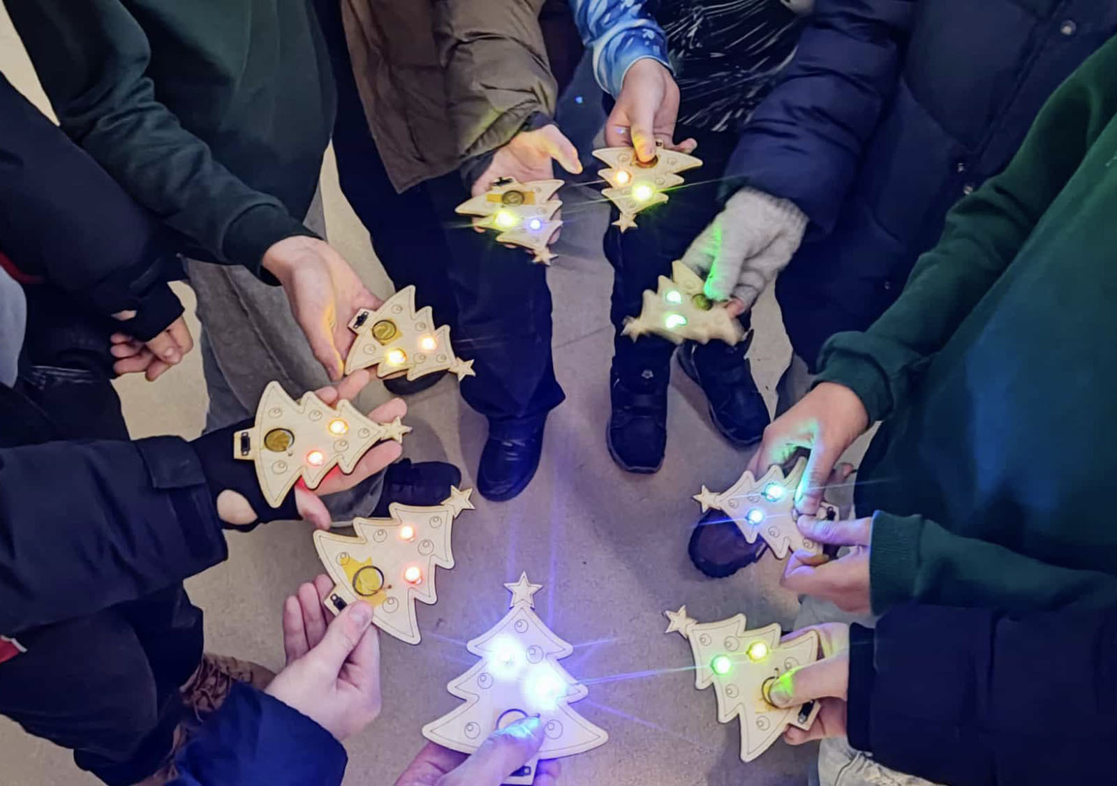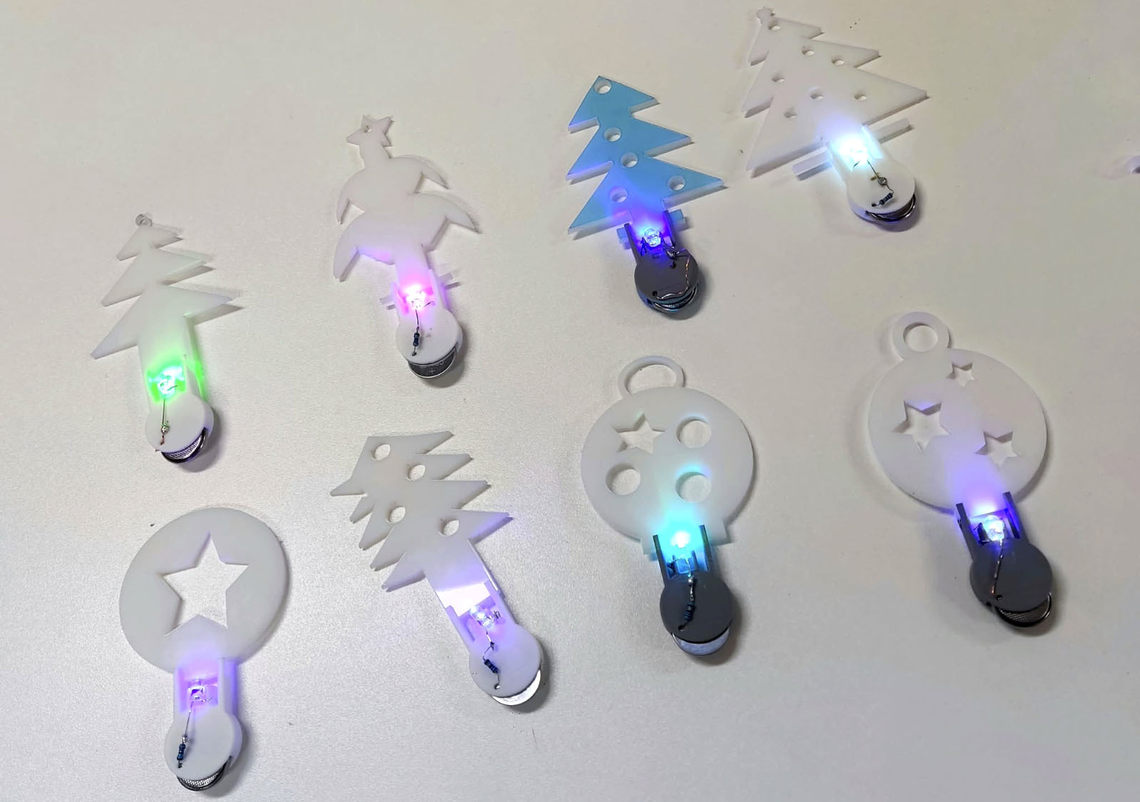 Lygiagrečiai vaikai gilino 3D modeliavimo įgūdžius su „TinkerCAD“ ir kūrė objektus, kuriuos galėjo atsispausdinti bei parsinešti namo. Helovino laikotarpiu gimė šviečiančios dekoracijos – nuo karstų iki moliūgų, kur dizainas susitinka su elektronika ir litavimu. Vienu rimčiausių išbandymų tapo LED kubai, kuriuose 3D modeliavimas reikalavo tikslumo, o kiekviena kubo pusė turėjo savo „galvosūkį“ – nuo pikselių meno iki sudėtingų formų ir net elektros grandinės brėžinio logikos. Kalėdiniuose darbuose atsirado dar daugiau elektronikos: šviečiančios eglutės ar skambaliukai, kuriuose mokiniai integravo komponentus, skaičiavo veikimo laiką, naudojo rezistorius, mygtukus, mokėsi valdyti LCD ekranus ir servo variklius.