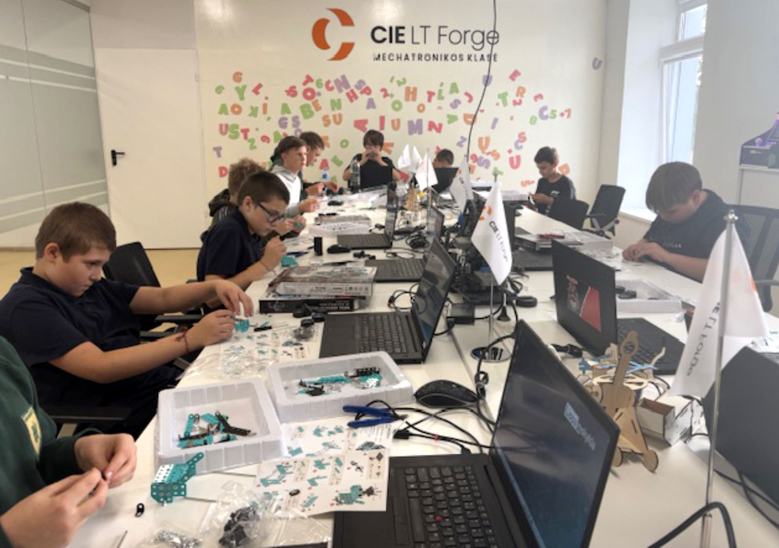 Papildoma „CIE LT Forge“ grupė sujungė skirtingų lygių mokinius ir dar labiau pastūmėjo į praktiką. Čia kuriami 3D spausdintuvu pagaminti žaislai su integruotais elektros komponentais, o taip pat mašinėlės-konstruktoriai, kuriuos mokiniai modifikuoja: prideda lempas, variklius, dekoratyvinius elementus ir pamažu verčia bazinį modelį individualiu projektu. Tokia erdvė ypač vertinga, nes vyresnieji natūraliai tampa pavyzdžiu jaunesniesiems, kurie drąsiau imasi sudėtingesnių sprendimų, žinodami, kad pagalba šalia.