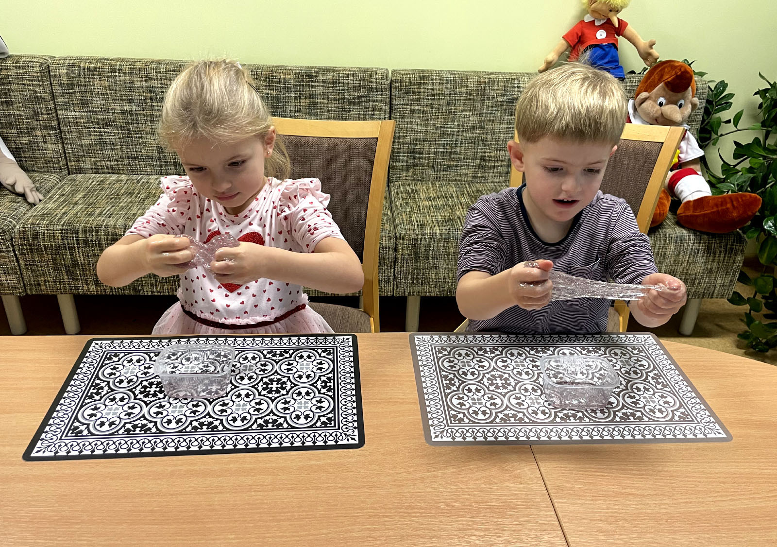 Vėliau vaikai pažino namų kasdienybę per kūną, rutiną ir žaidimus. Užduotys padėjo kalbėti apie ryto įpročius, emocijas, dėmesio išlaikymą, o žaidimų tema atvėrė kelią mąstymui per patirtį. Viena įsimintiniausių veiklų – „paslapčių dėžė“, kai vaikas per lytėjimą spėja, kas viduje, mokosi apibūdinti pojūčius ir pasitikėti savimi, o po to pereina prie „Tangram“ dėlionių, kuriose reikia kantrybės ir logikos, kad mažos formos taptų visuma.