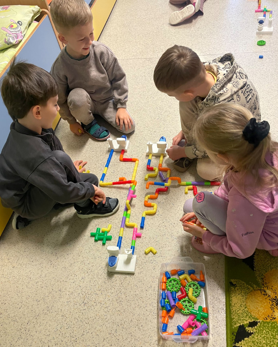 Labai svarbi pusmečio dalis buvo vandens tema. Vaikai aiškinosi, kaip vanduo atkeliauja iki namų ir kas nutinka, kai jį panaudojame. Kanalizacijos ir nuotekų pamokoje jie konstravo vamzdynų sistemą iš vamzdelių, stebėjo, kaip „nuotekos“ keliauja iki valymo įrenginių, ir suprato, kodėl svarbu saugoti gamtą ir švarų vandenį. Tokia tema vaikui tampa ne abstrakčiu pasakojimu, o konkrečiu veikiančiu modeliu.