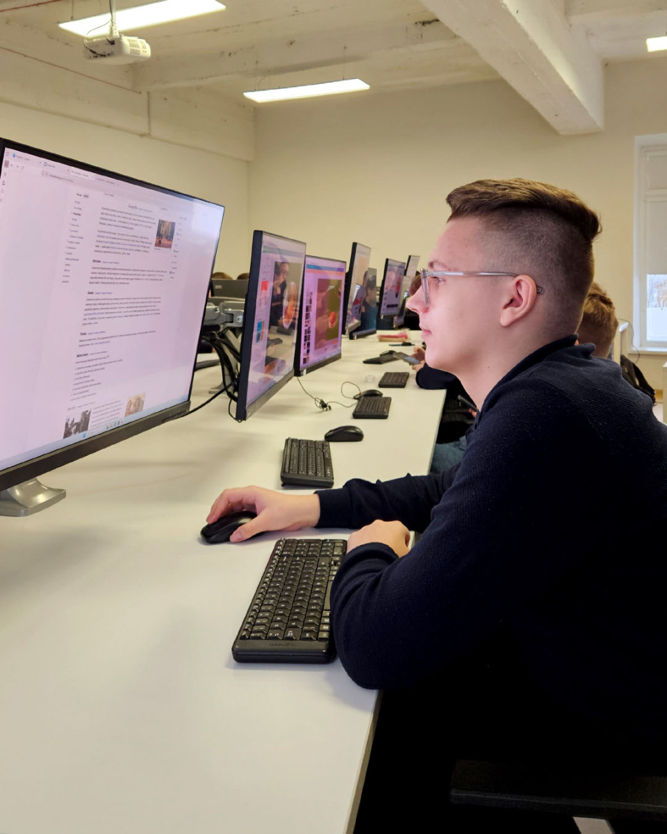 Mokymų pradžioje daug dėmesio buvo skirta tam, kas dažnai lieka nepastebėta – vizualų reikšmei ir jų poveikiui. Mokiniai analizavo, kaip vaizdas padeda perduoti žinutę, kodėl vieni dizainai patraukia dėmesį, o kiti lieka nepastebėti. Šiame etape jie susipažino su pagrindiniais dizaino principais: kompozicija, spalvų derinimu, šriftais, formomis ir grafiniais elementais.