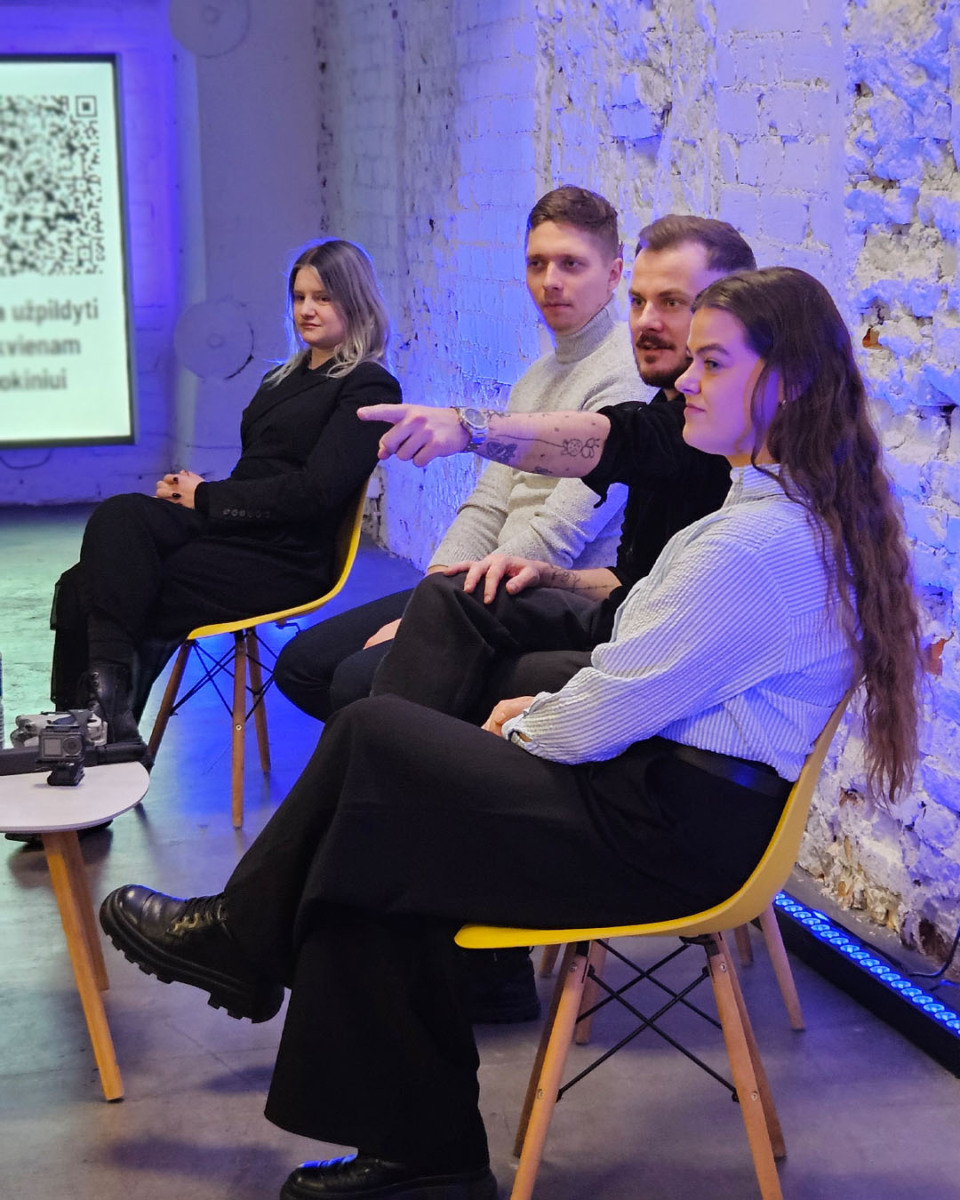Susitikimo metu mokiniai aktyviai klausė, diskutavo ir dalijosi savo pastebėjimais. Kalbėta apie kasdienį darbą vizualinės komunikacijos srityje, karjerą socialiniuose tinkluose, pasiruošimą, nuoseklumą ir pastangas, kurių reikia norint augti pasirinktoje srityje. Šis pokalbis tapo svarbia jungtimi tarp pamokų metu įgytų įgūdžių ir platesnio supratimo apie kūrybinių profesijų kasdienybę.